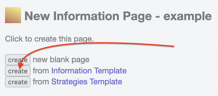 We create this page using the **Information Template** so that we will have a standard structure. Click the "create" button next to the template.