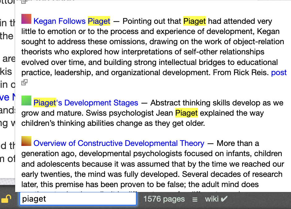 Initially, this search will be with those in our wiki pod but by clicking on the chevron for the Creative Noosphere on the Welcome Visitors we can add thousands of pages from other educators who we are learning with.